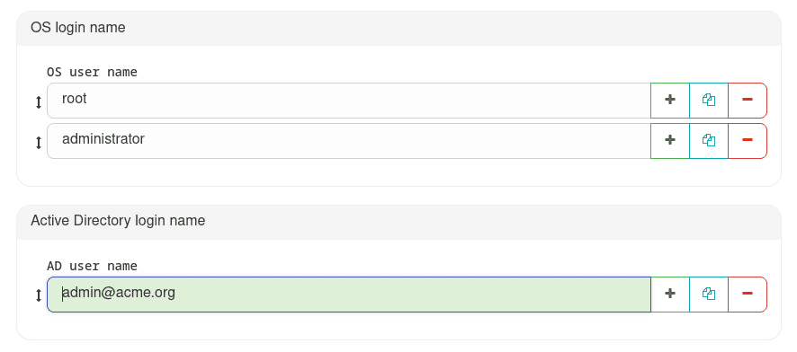 Once a User Group has been assigned within a Host, we can assign it predefined users who must exist within the host itself (OS Login) or within an Active Directory domain (AD Login).