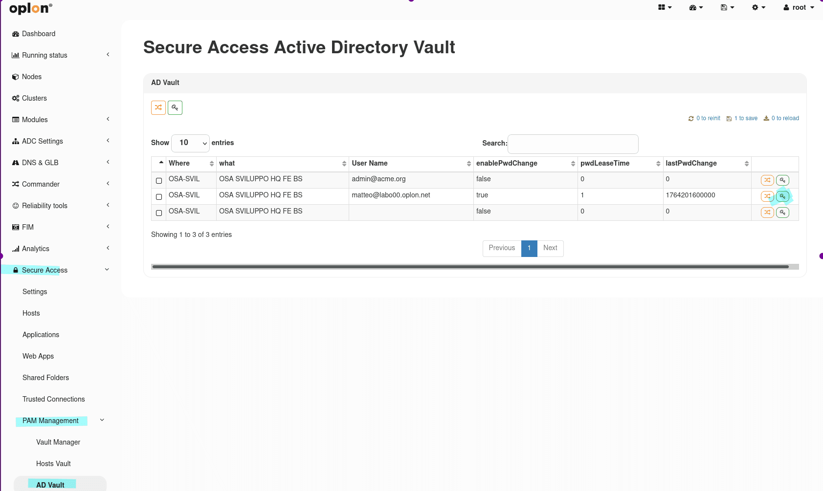 To assign the password to an AD Login (assigned to a User Group) of a Host, you must go to the AD Vault section via the menu: PAM Management > Vault Manager > AD Vault