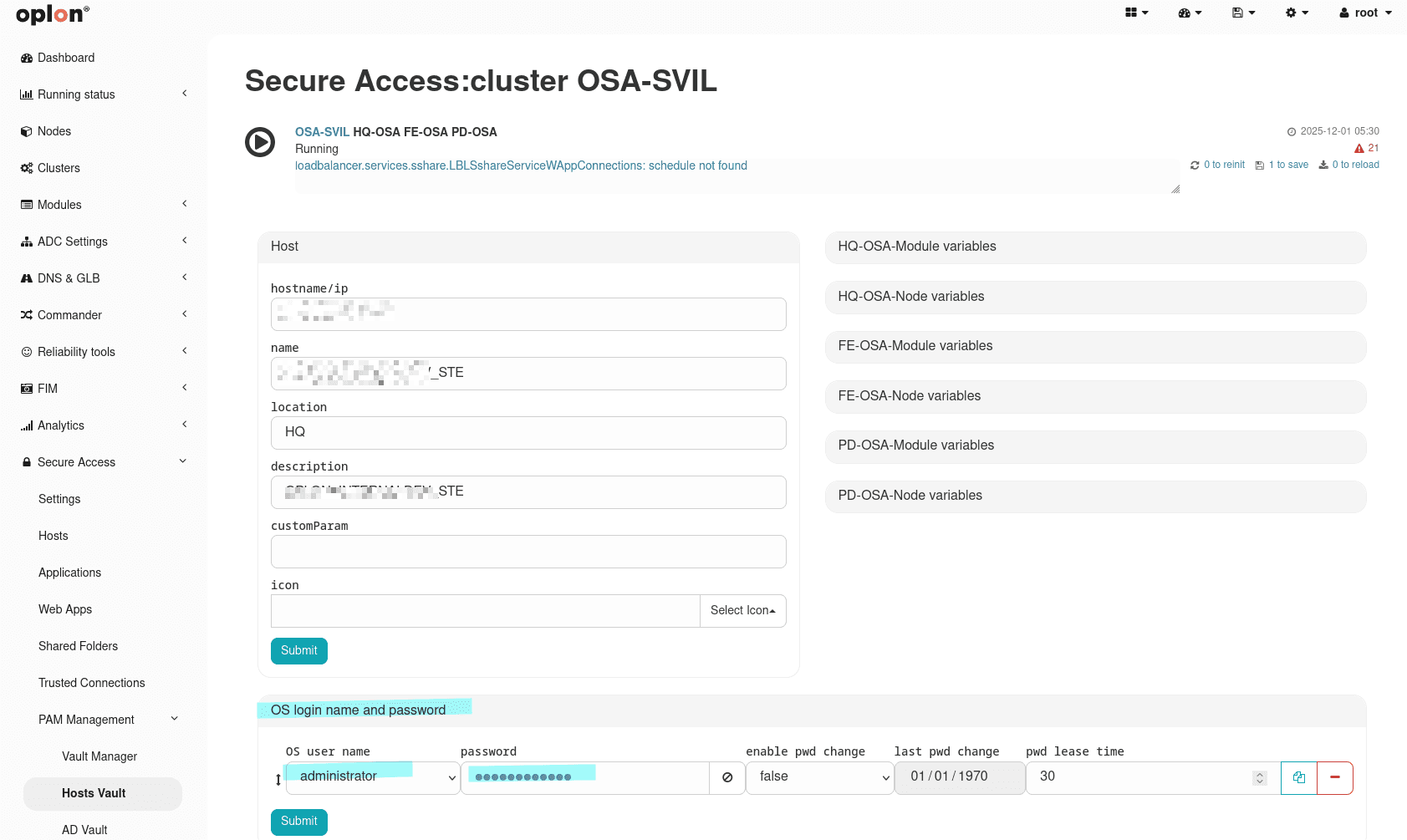 To assign the password to an OS Login (assigned to a User Group) of a Host, you must go to the Host Vault section via the menu: PAM Management > Vault Manager > Host Vault