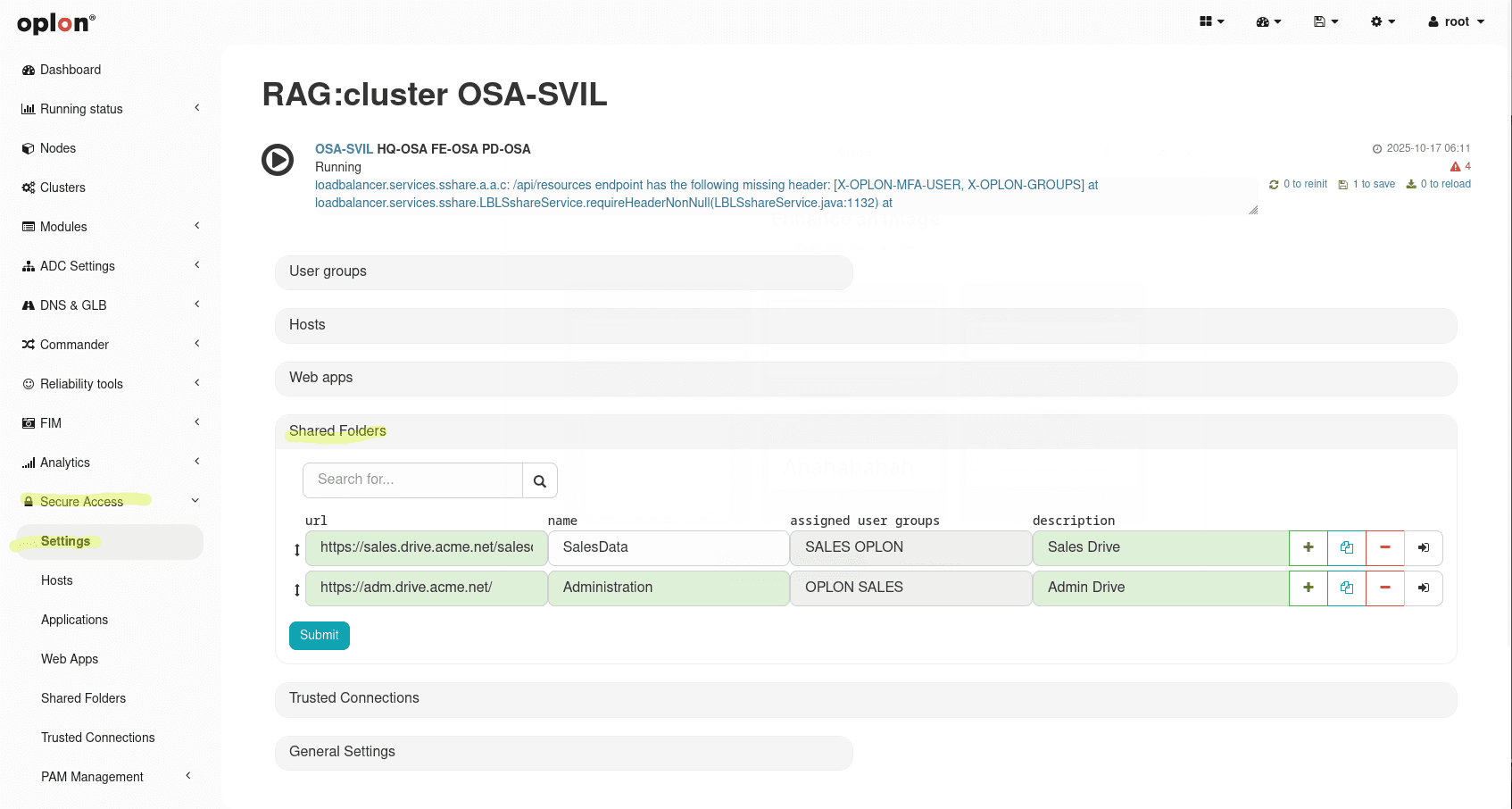 Configuring Shared Folders on Oplon ADC