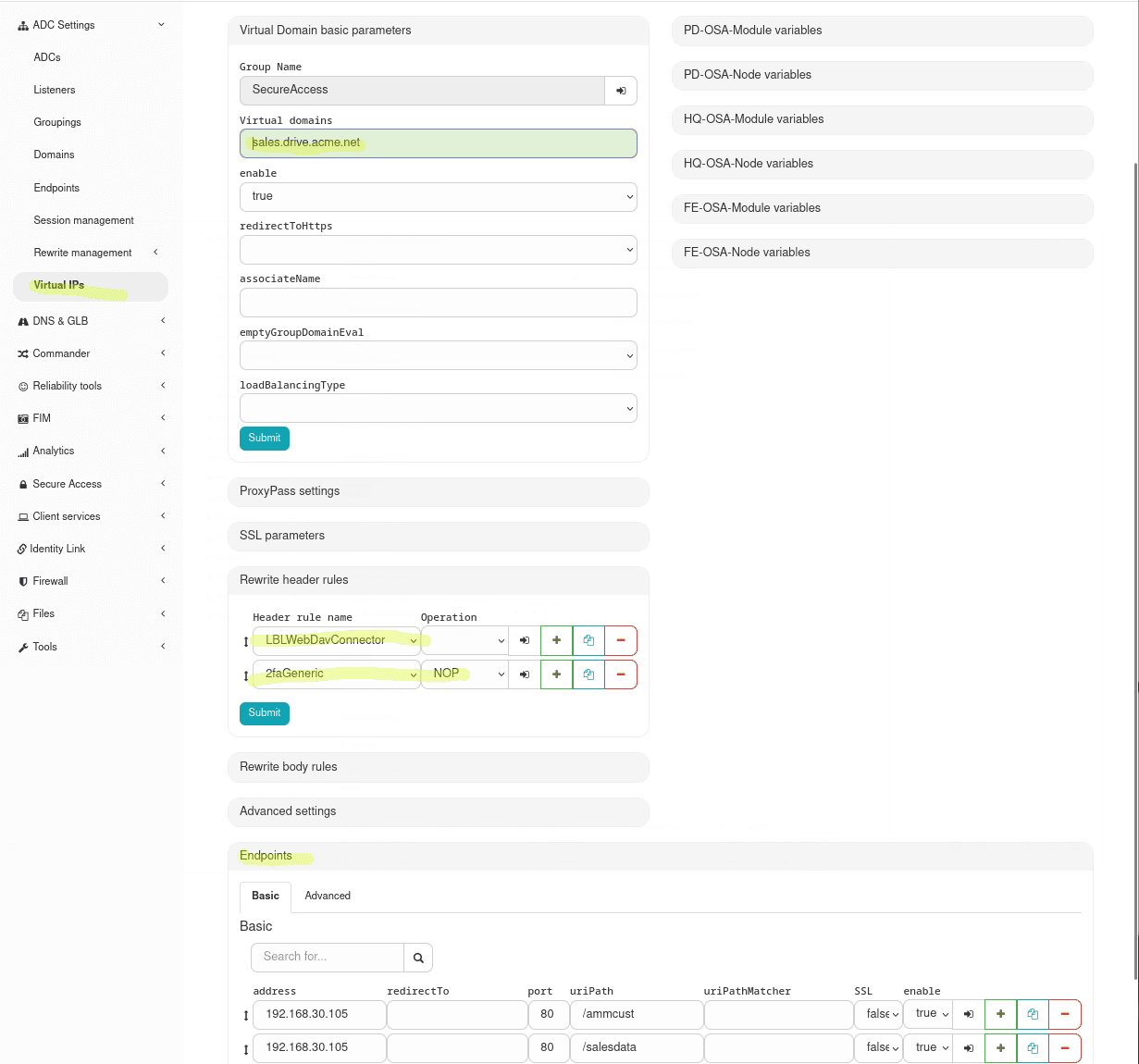 url: address via the Oplon ADC (e.g.https://sales.drive.acme.net)name: readable nameassignedUserGroups: authorizedUser Groupsdescription: short description and policy