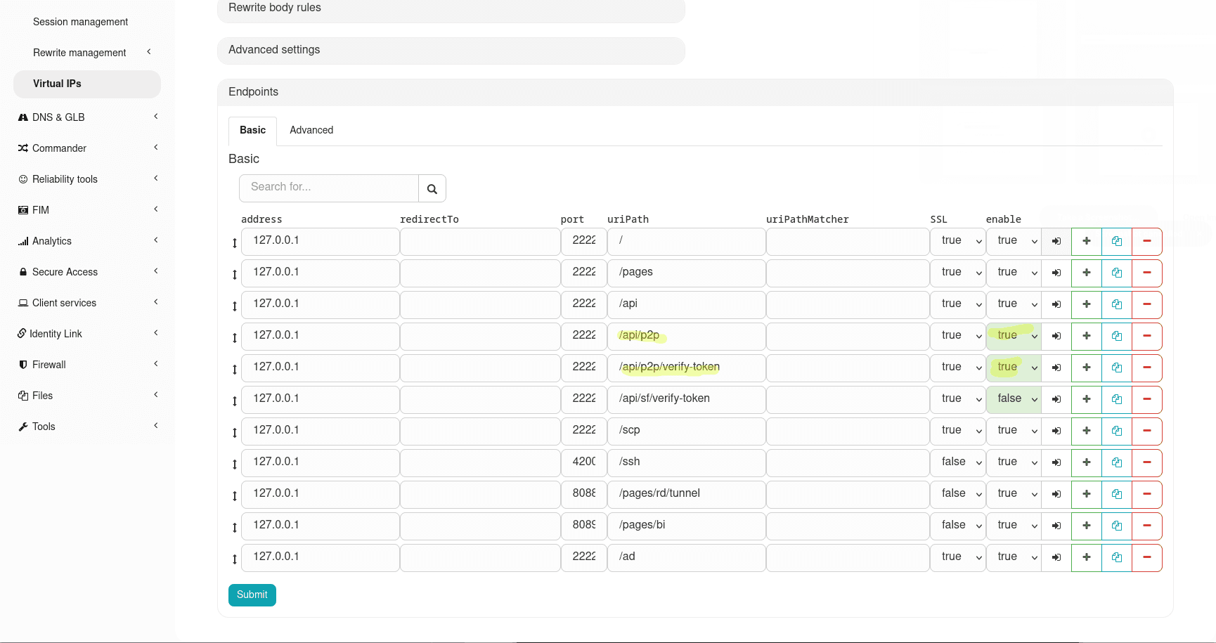 Important: first, ensure that the /api/sf/verify-token endpoint of the Secure Access grouping is enabled