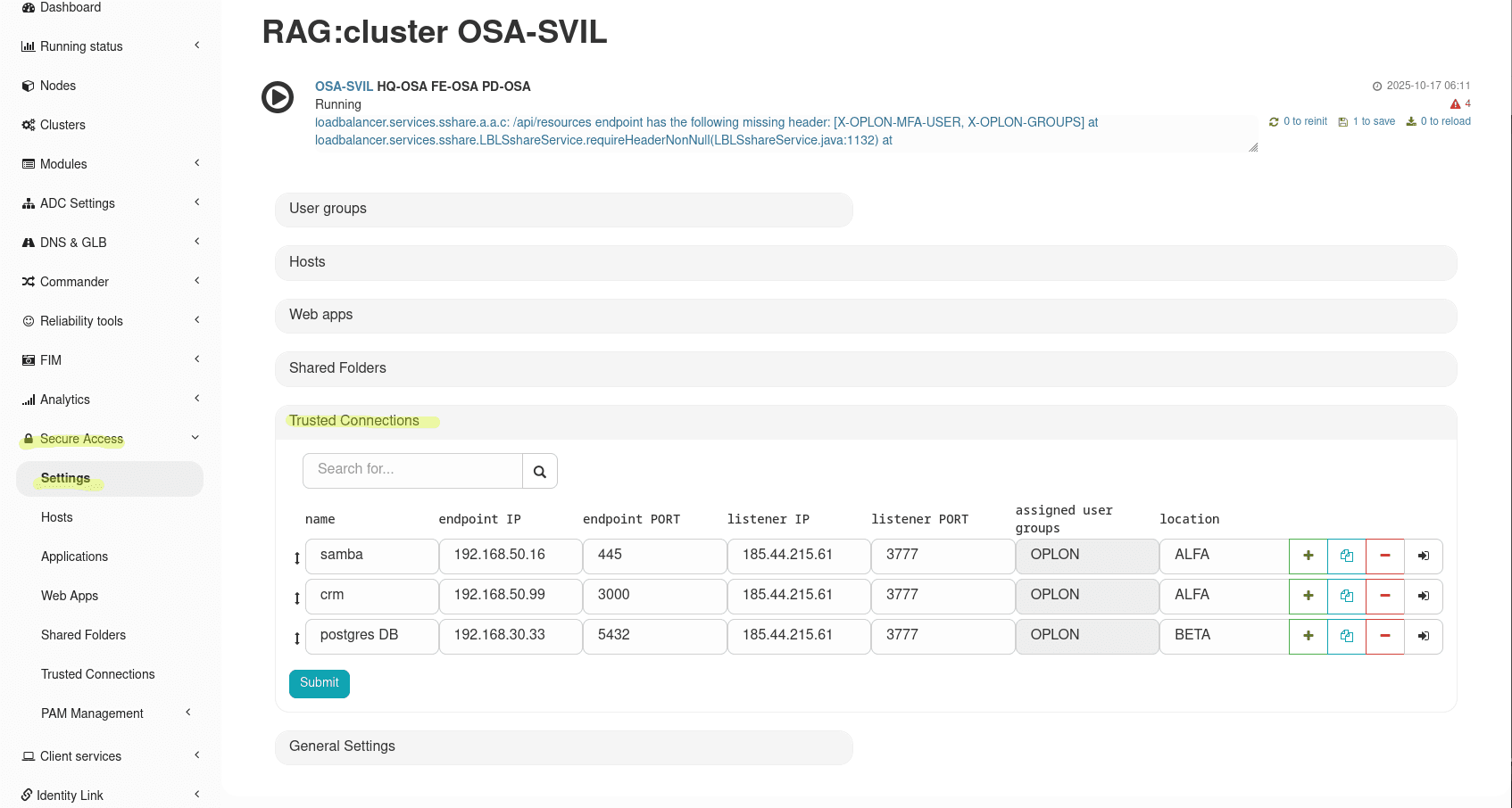 Configuring Trusted Connections on Oplon ADC