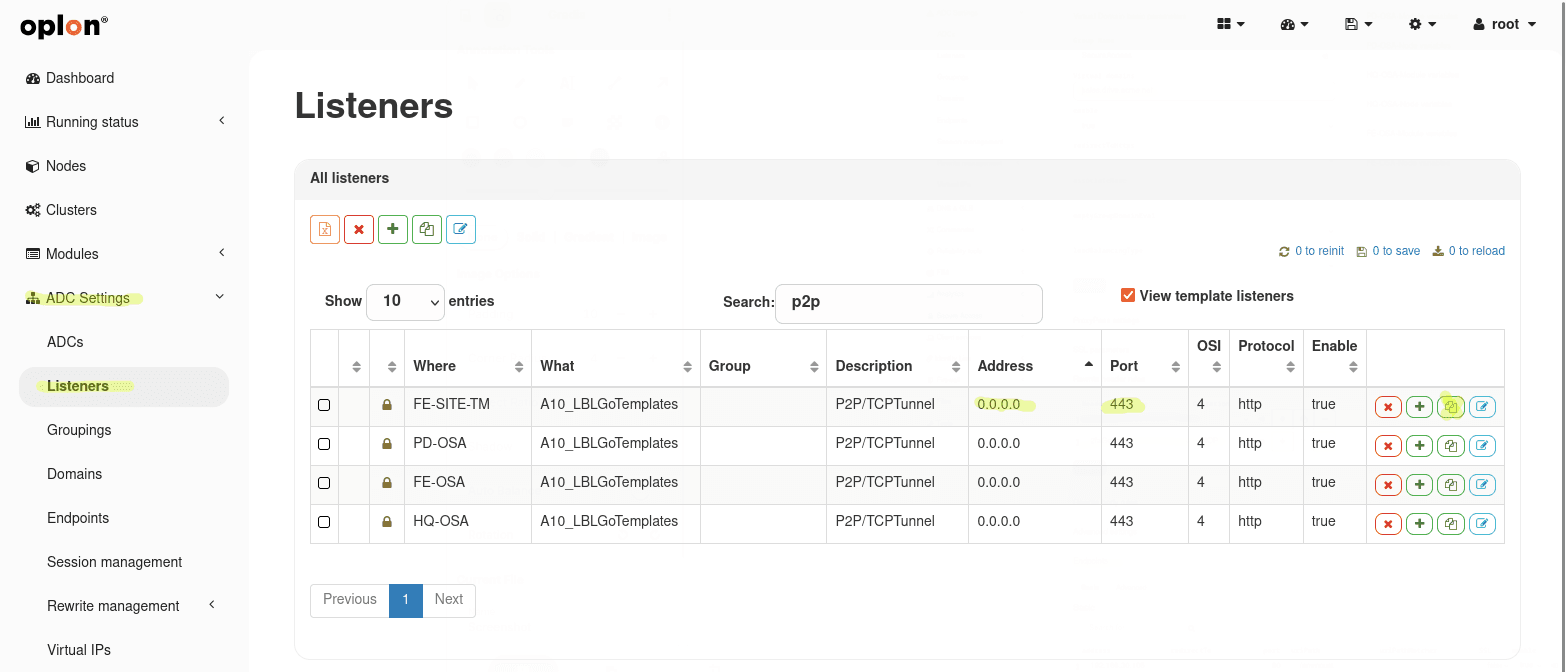 - Go to ADC Settings > Listeners and enable “View Template Listners”.